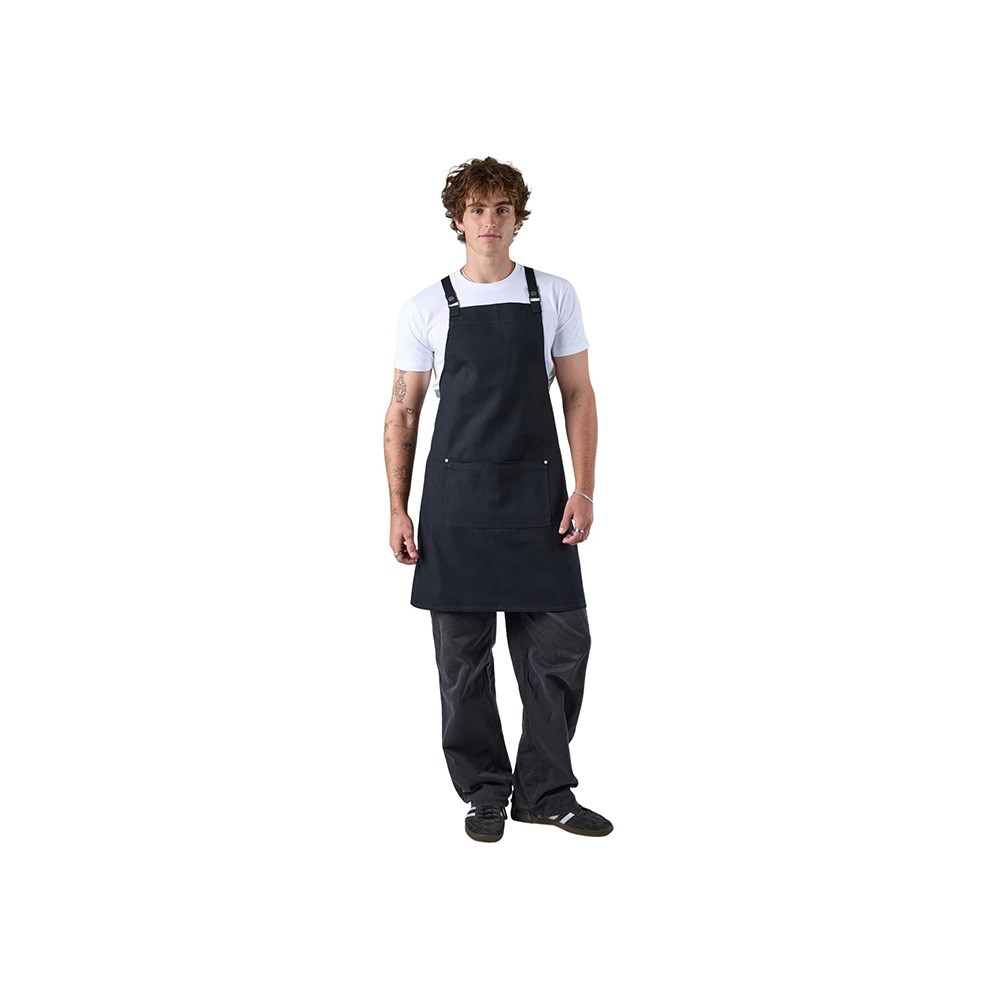 The Byron Bib Apron Cross Back in black (860x760mm) combines effortless comfort with sleek, minimalist style. Crafted from heavyweight cotton canvas, its innovative cross-back straps disperse weight evenly across your shoulders, so you can move freely without neck strain. The breathable material feels lightweight against your skin, making it perfect for long shifts in busy kitchens. Designed as a true blank canvas, this apron offers ample space for logos, embroidery or screen printing, making it an ideal choice for businesses seeking uniform branding. Easy to wash and fade-resistant, this apron promises lasting durability and style that evolves with your brand.