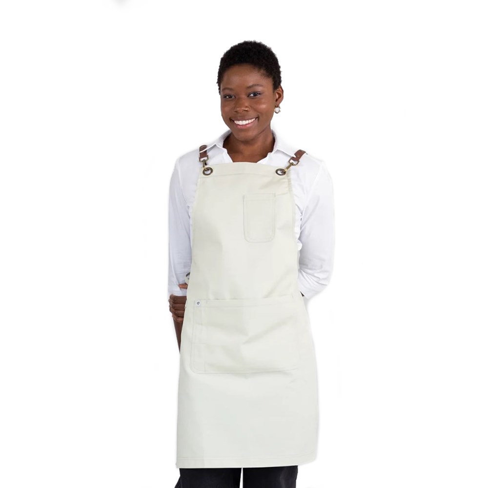 The Luna Bib Apron is equipped with a chest pen pocket, a large utility pocket, and a handy towel loop, making it easy to keep your essentials within reach. Ideal for front-of-house staff, baristas, trendy bartenders, and chefs in busy open kitchens, Luna seamlessly blends functionality with class.