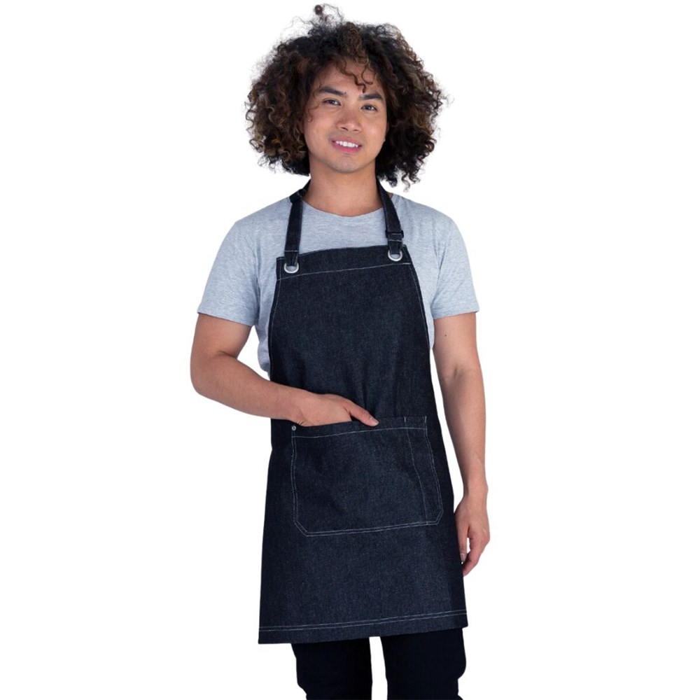 The MIA Bib Apron Black Denim 720x700mm Aussie Chef is a stylish and versatile apron crafted from lightweight 100% cotton denim. This shorter, above-the-knee design is perfect for those on the go, offering flexibility with its adjustable neck loop and the option to tie it at the back or front.