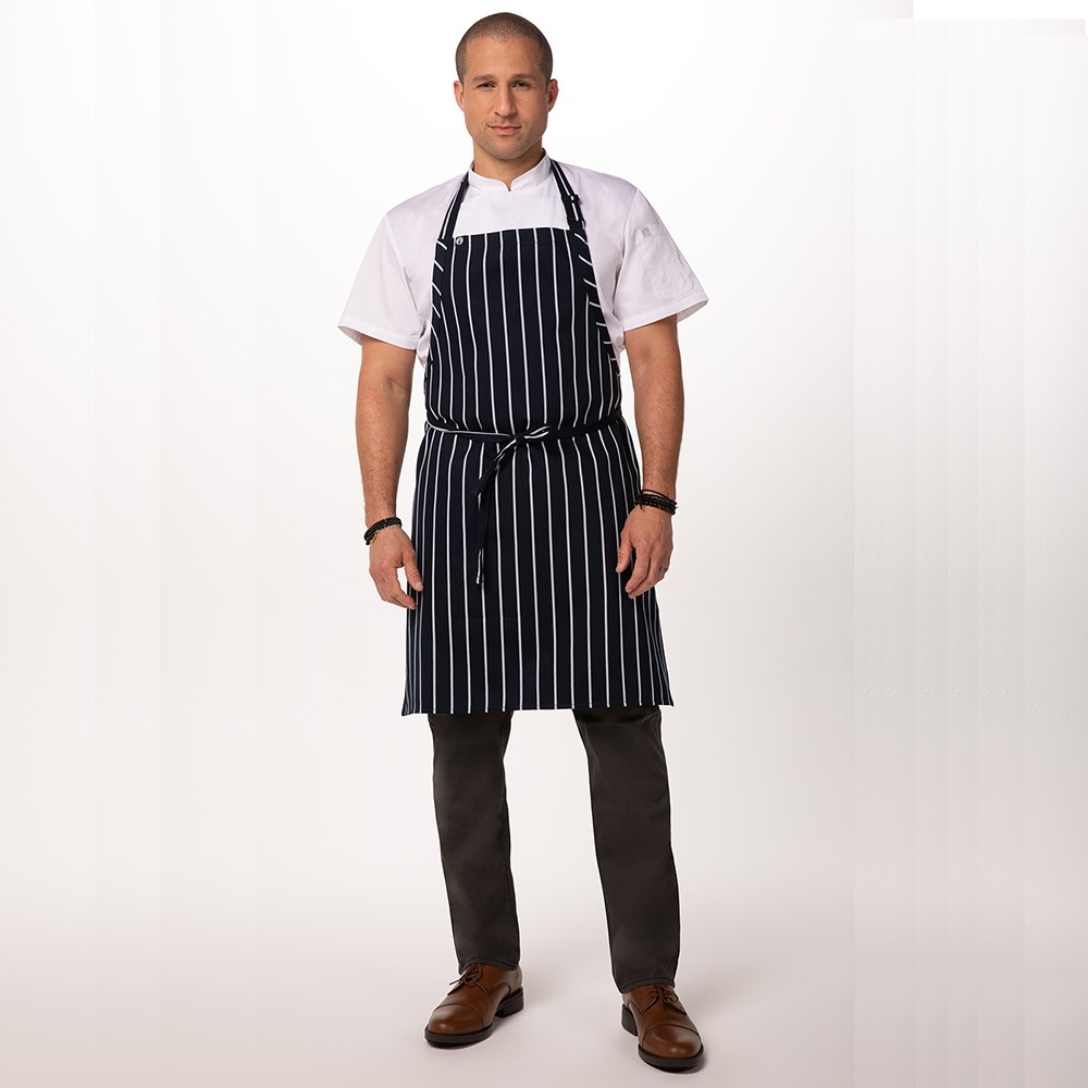 Chalkstripe Bib Apron No Pockets Navy 860x680mm Chef Works