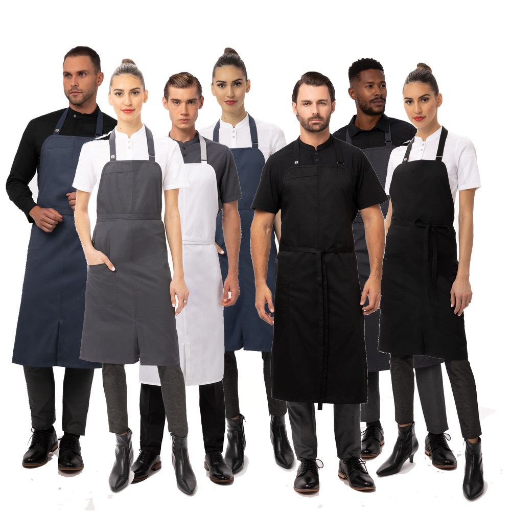• 1200mm Chef's Bib Aprons available in Charcoal [Product code: 5400996], White [Product code: 5400997], Black [5400998], and Blue [5400999]