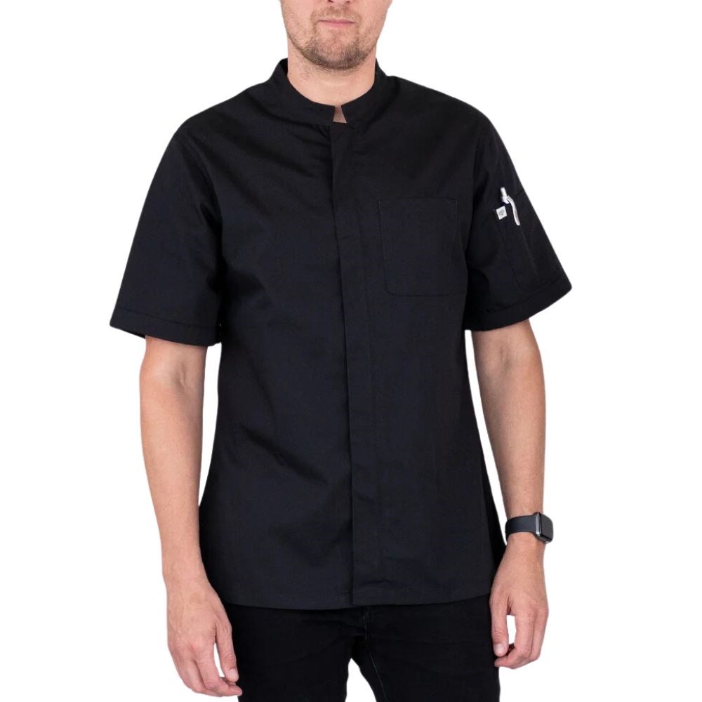 The Arli Chef Shirt Black Extra Small Aussie Chef is a modern unisex jacket designed for chefs, waitstaff, and front-of-house professionals. Featuring a tailored work shirt look, it has a hidden heavy-duty zip front for easy wear and a polished appearance. Made from lightweight, colourfast poly/cotton fabric, it ensures durability and long-lasting comfort in busy work environments.