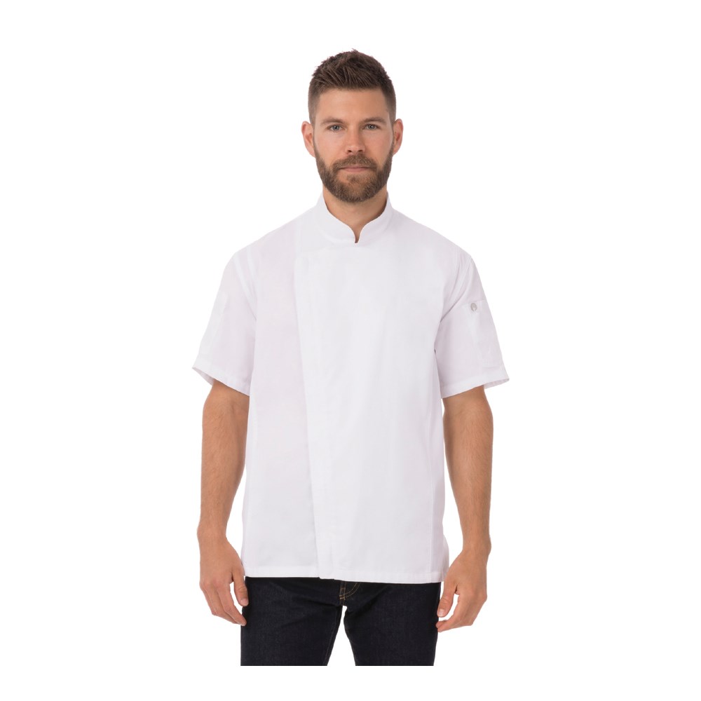 The Chef Works Springfield Men's White Extra Small Chef Jacket offers a timeless addition to any culinary wardrobe. The short-sleeved Springfield Chef Jacket is a classic everyday uniform staple, crafted from lightweight material to keep you cool in the hottest of cooking environments.