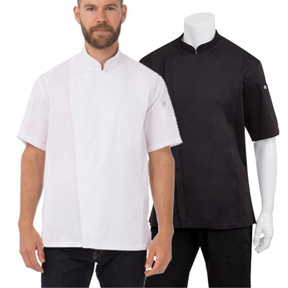 Men's White Extra Small Chef Jacket The short sleeve Springfield Chef Jacket by Chef Works is a classic everyday uniform staple. Made from lightweight material, it will keep you cool in the hottest of cooking environments.