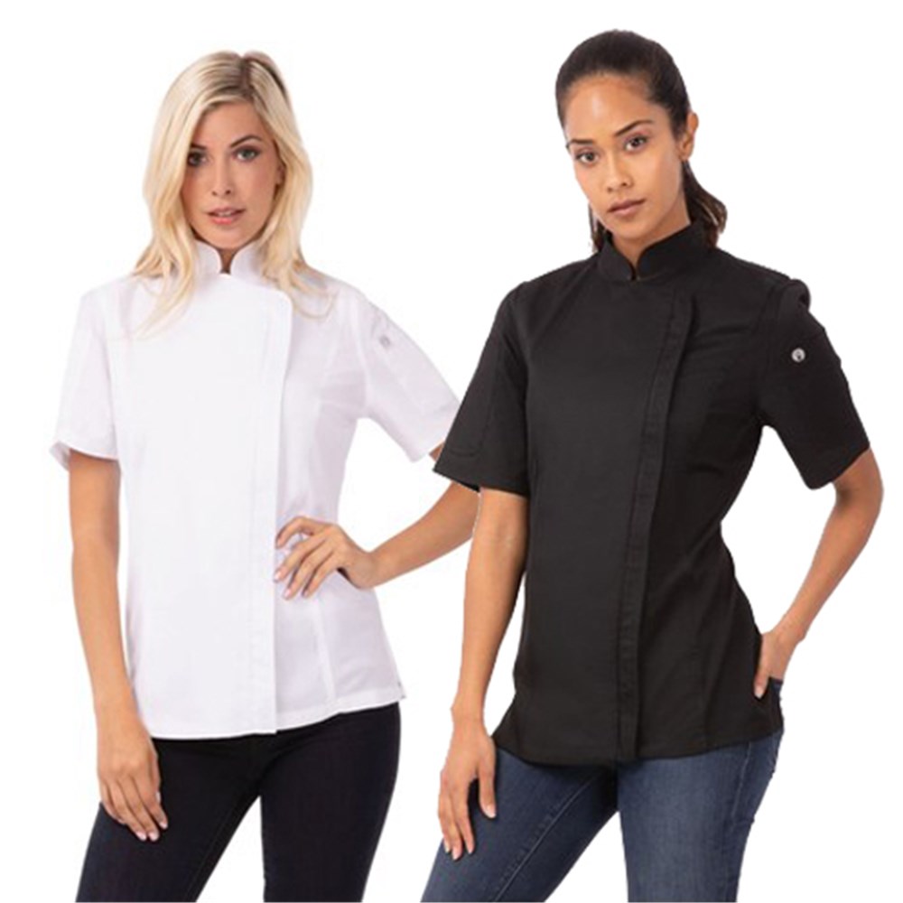 Women's White XS Chef Jacket The short sleeve Springfield Chef Jacket by Chef Works is a classic everyday uniform staple. Made from lightweight material, it will keep you cool in the hottest of cooking environments.