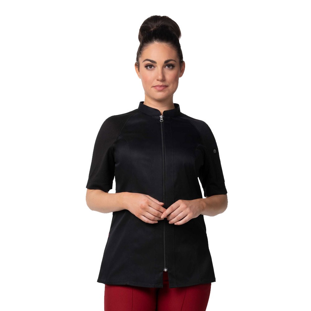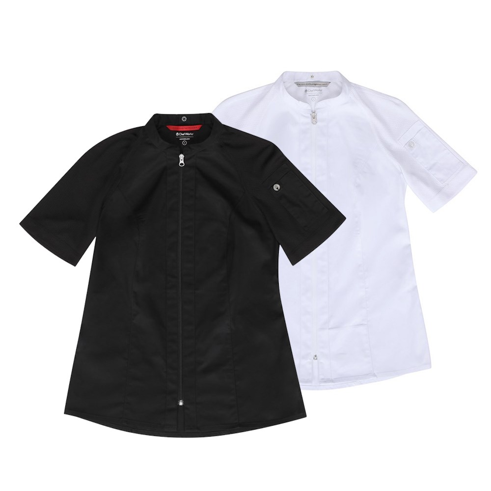 The Arcadia Chef Coat for Women presents a modern interpretation of the traditional chef coat, focusing on comfort, artistic expression, and ambition. This chef coat features a flexible design that allows for effortless movement, empowering you to showcase your culinary skills with ease. It is crafted from eco-friendly, recycled Cool Vent™ mesh material, providing both sustainability and stretch for optimal comfort. With its contemporary fit and sleek aesthetic, this chef coat gives you the freedom to shape your own future in the kitchen.
