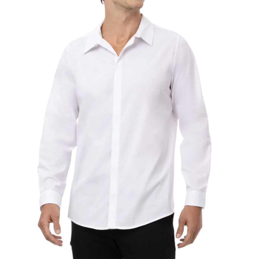 The Mens Premium Formal Dress Shirt by Chef Works is ideal for those seeking a polished, professional look. Featuring a long sleeve, collared design with collar stays and a concealed front placket, it delivers a sharp and elegant appearance. Adjustable button cuffs and a buttoned gauntlet enhance comfort and versatility.