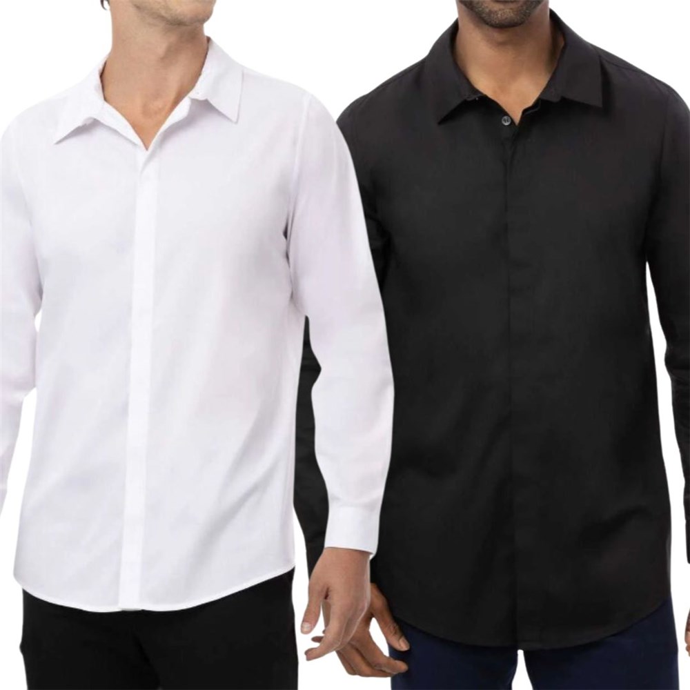 Mens Premium Formal Dress Shirt Black Long Sleeve Extra Small Chef Works 5484835