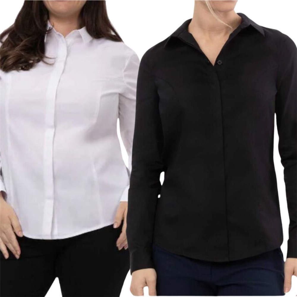 Womens Premium Formal Dress Shirt Black Long Sleeve 3XL Chef Works 5484855
