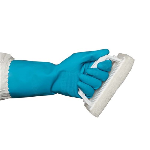 These blue Size 8.5 Medium Silverlined Gloves protect your hands from harsh cleaning chemicals. These gloves are a superior choice for industrial and food-handling applications. Crafted from rubber, these gloves provide optimum protection and comfort.