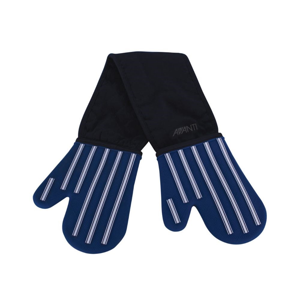 Stay protected in the kitchen with the Oven Mitt Double Silicone 380mm Butcher Stripe by Avanti. Designed for comfort and safety, this glove shields both hands and forearms when handling hot cookware or trays.
