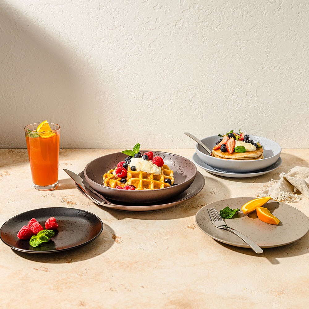 • Crockery with matte and semi-matte finishes is not suitable for use with serrated knives or dishes that require heavy cutting motions