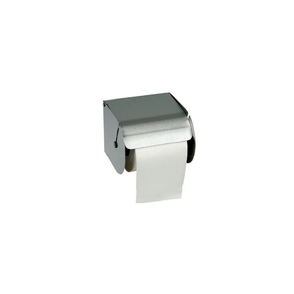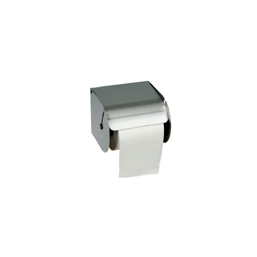 Basic single stainless steel toilet roll dispenser, easy to remove and replace toilet rolls with top cover to protect toilet roll against dust.